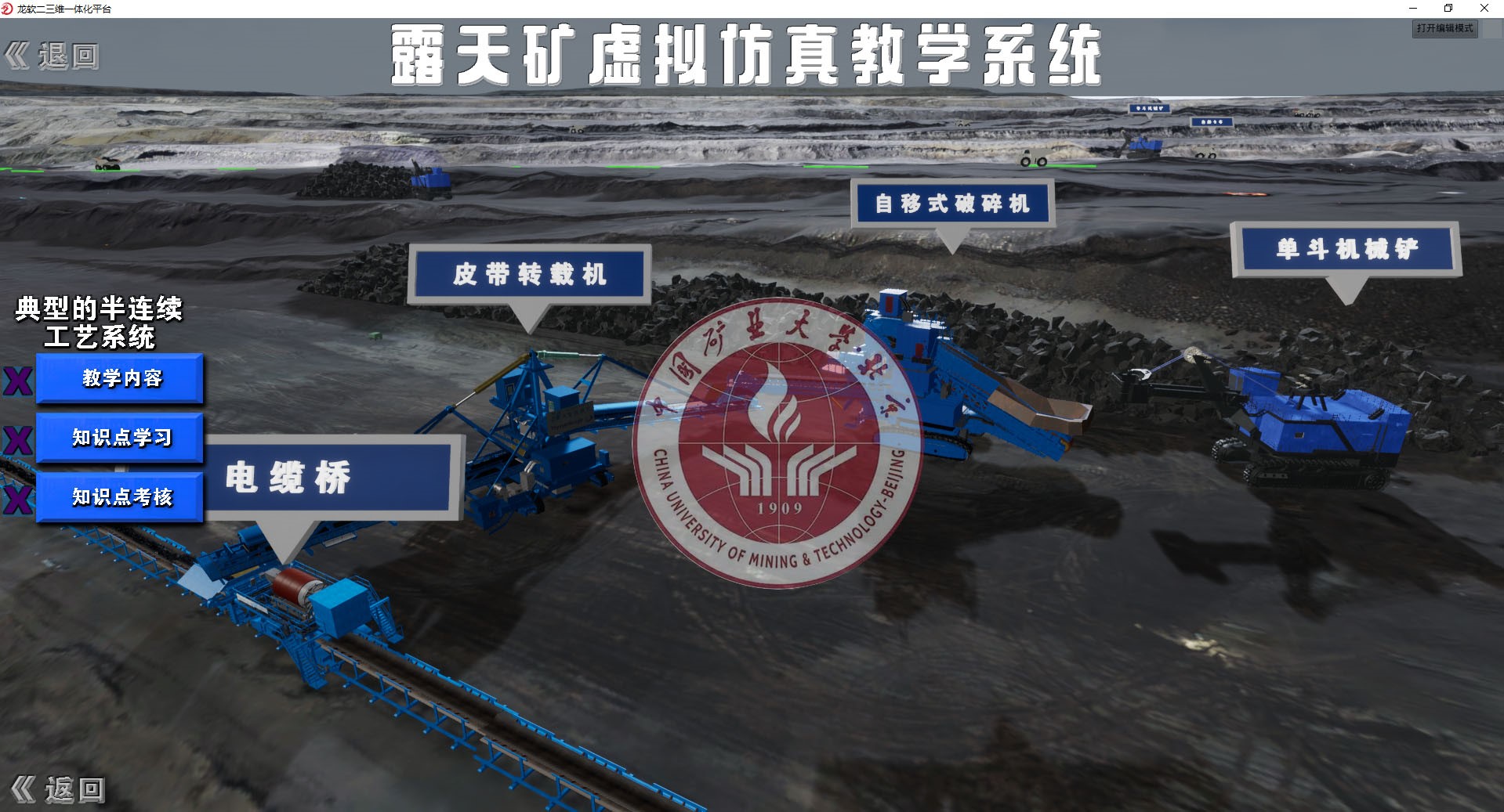 露天礦虛擬仿真教學(xué)系統(tǒng)-半連續(xù)工藝流程交互仿真模塊