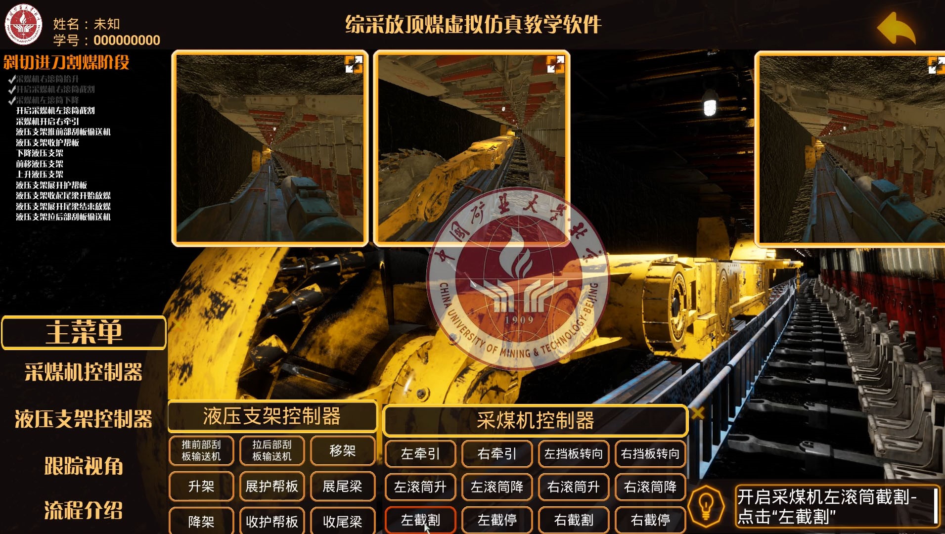 綜采放頂煤虛擬仿真教學(xué)軟件-斜切進(jìn)刀工藝流程交互仿真模塊