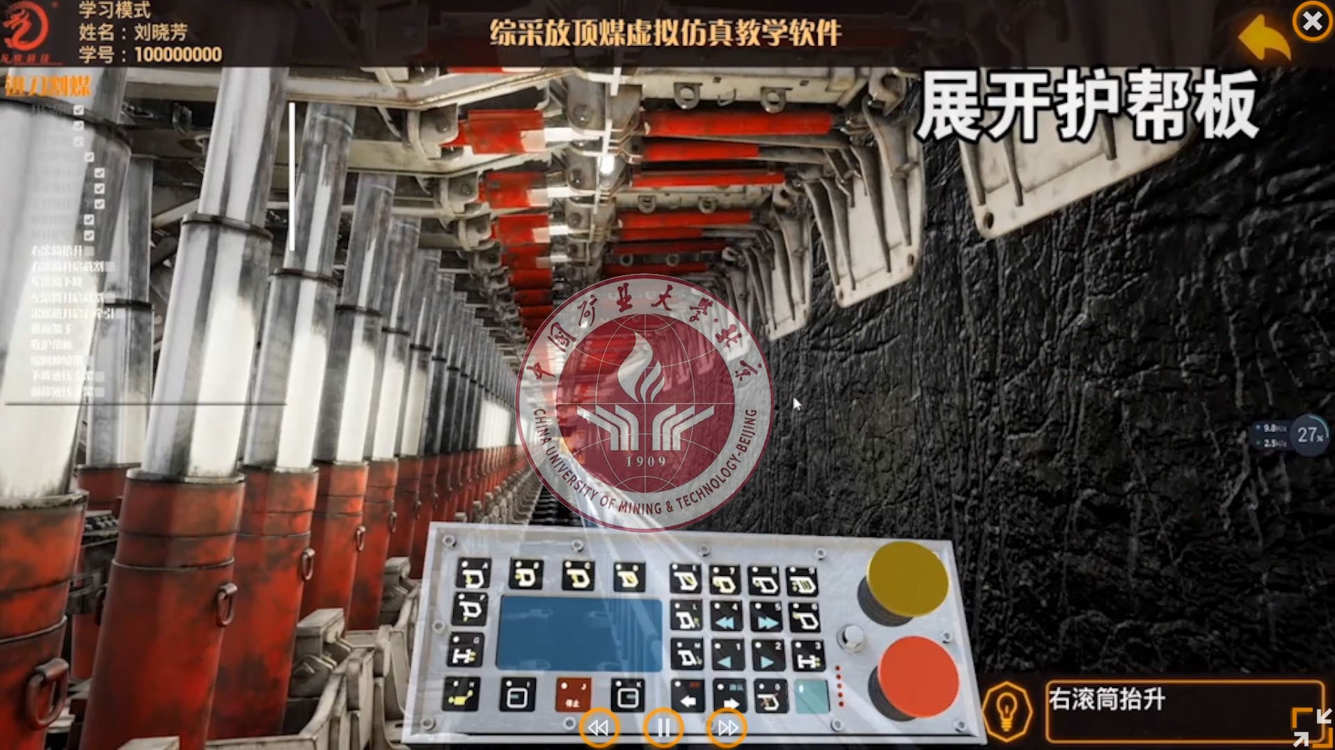 中國礦業(yè)大學(xué)(北京)綜采放頂煤仿真教學(xué)軟件協(xié)同交互操作練習(xí)