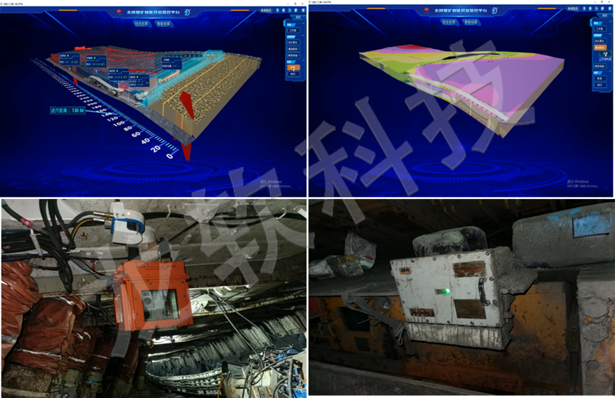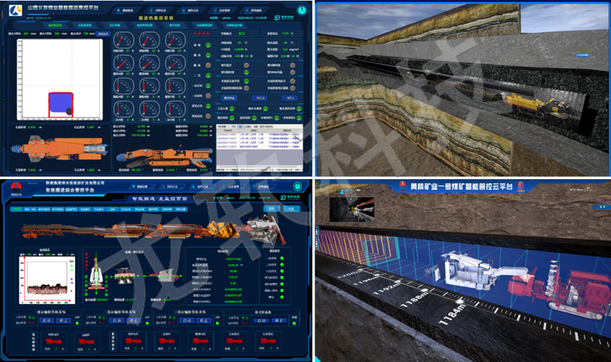龍軟科技基于精確大地坐標(biāo)及動(dòng)態(tài)地質(zhì)模型的智能掘進(jìn)系統(tǒng)包括了掘進(jìn)工作面超前物探、地質(zhì)模型動(dòng)態(tài)更新、設(shè)備精確定位及導(dǎo)航、無(wú)線網(wǎng)絡(luò)傳輸及控制、定位截割、視頻監(jiān)控、數(shù)字孿生管控等關(guān)鍵技術(shù)及軟硬件產(chǎn)品,實(shí)現(xiàn)掘進(jìn)工作面成套裝備的三維可視化遠(yuǎn)程一鍵啟停控制、掘進(jìn)機(jī)定位截割及協(xié)同控制等功能。